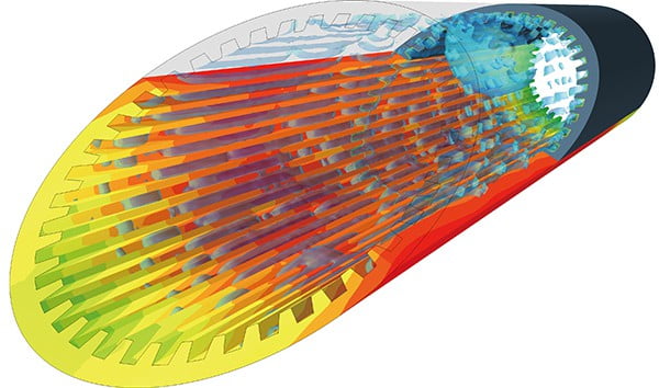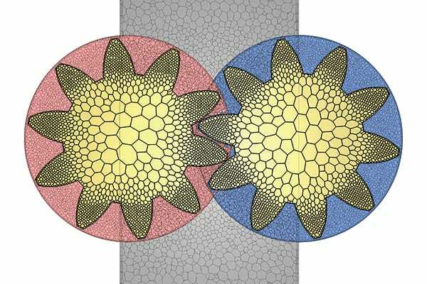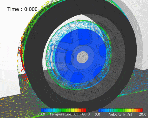 Discontinuous mesh function enables an analysis with consideration on shear heating between rotor and pad in a disk brake. The function also makes it possible to analyze a combination of rotation and translation such as a piston pump. Free movement of regions, that cannot be analyzed using existing functions such as stretching or rotating elements, can be simulated by overset mesh function to overlap mesh elements for stationary and moving regions.