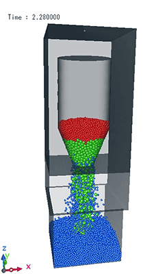 With the use of particle tracking function with inter-particle forces (DEM), simulation can be performed on phenomena where fluid flows through a particle filling, such as fluidized bed and powder conveying.