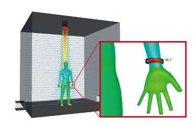 Combination use of the thermoregulation-model (JOS) and a fluid analysis enables analyses of the surface temperature of a human body under a certain thermal environment. It can also be used to analyze temperature and humidity changes in the surrounding environment of a human body. The user can consider age, clothes, and physiological phenomena of the human body such as heat transfer by blood flow in addition to the surrounding environment of a human body such as temperature and velocity.